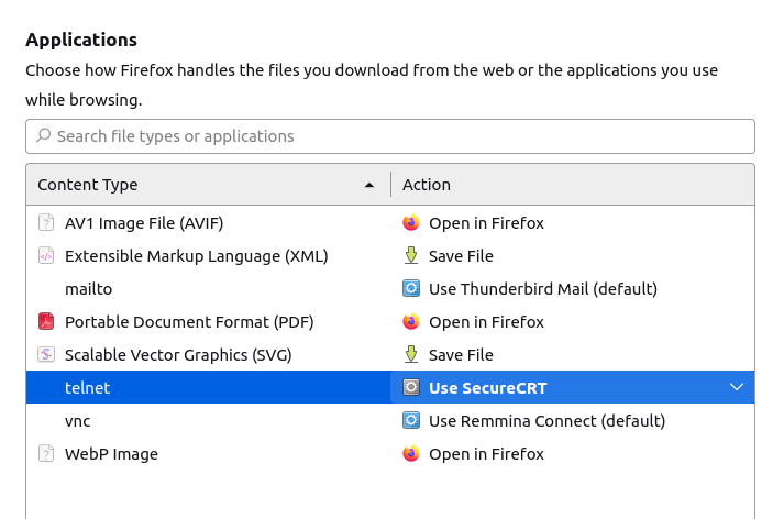 Firefox - register telnet protocol handler